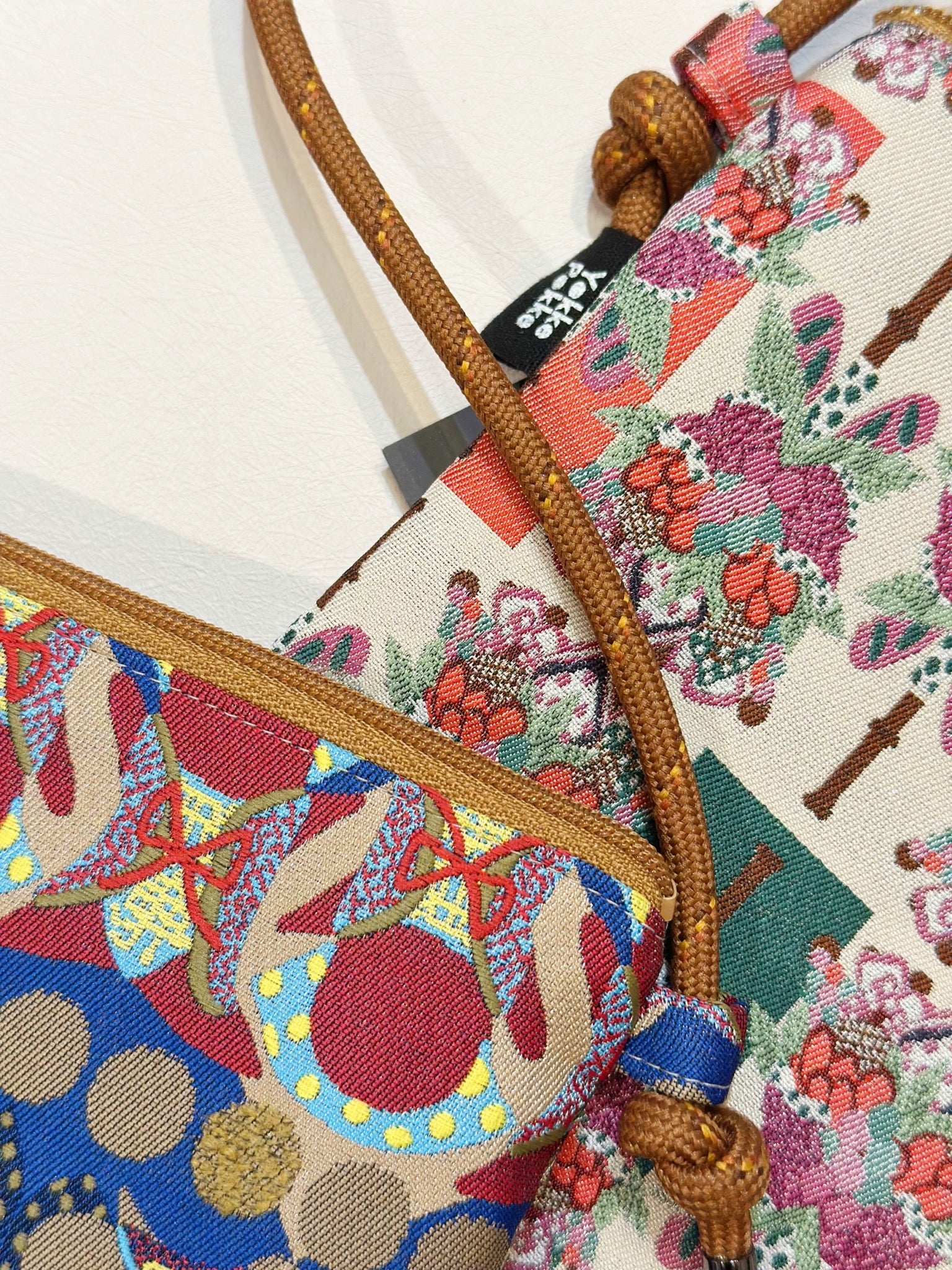 由於西陣織本身的織造特性,即使是同一卷布料,不同部位的圖案也可能有細微差別。因此,嚴格來說,每個 Yokke Pokke 包都是世上唯一的。