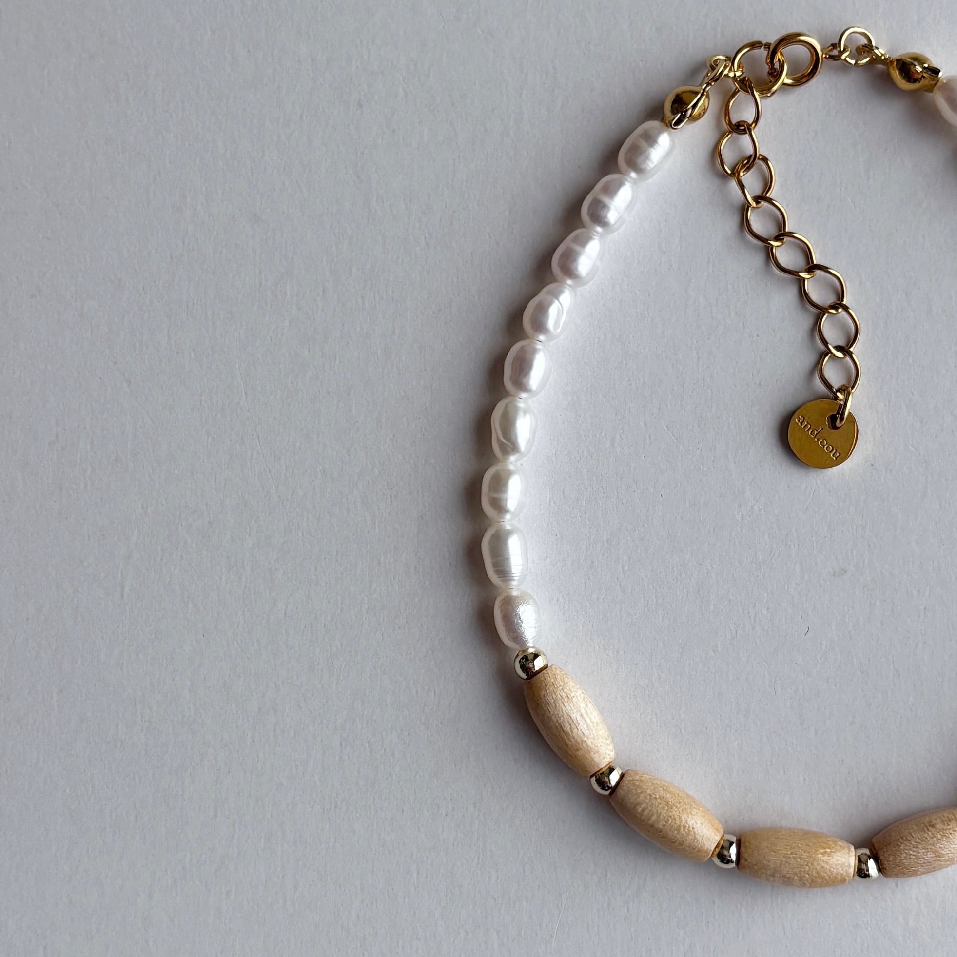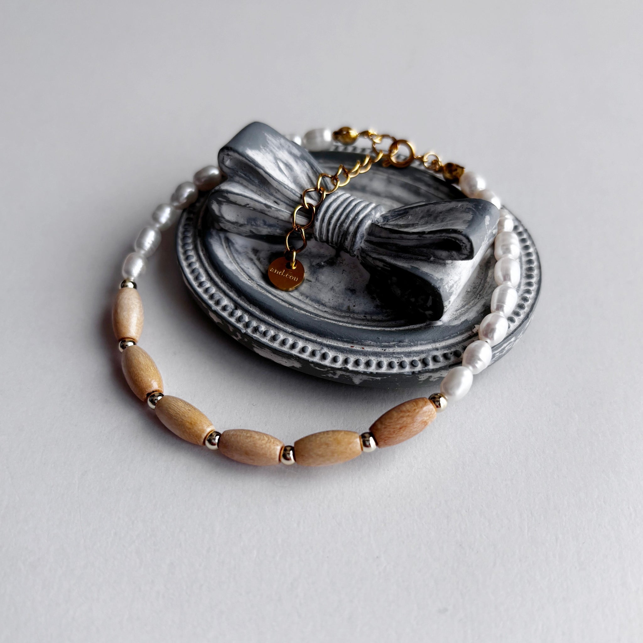 □ 材質:淡水珍珠、木珠;扣子:醫用不銹鋼