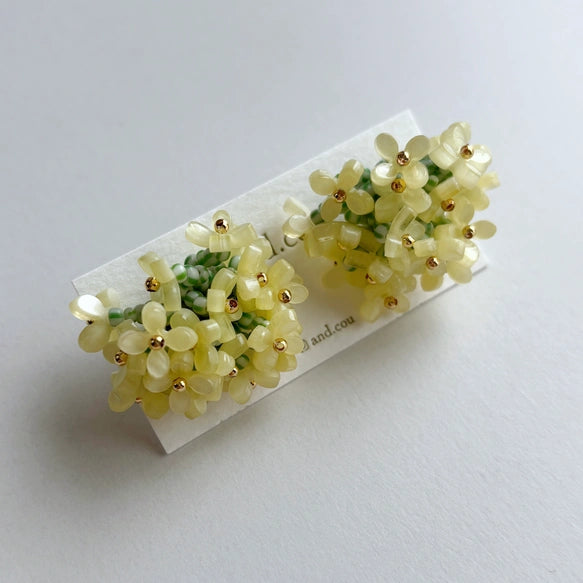 靈感來自蒲公英。搭配的條紋珠子是復古的法國種子珠。