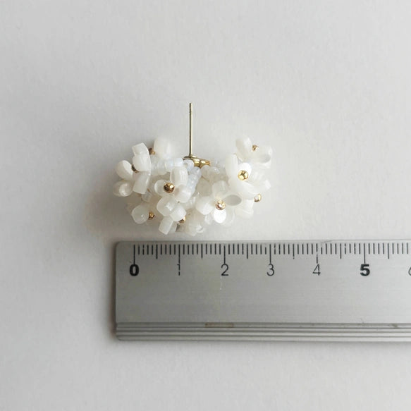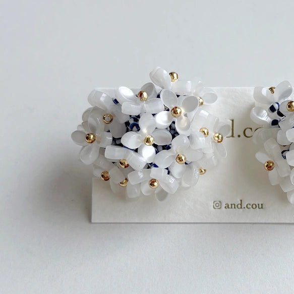 受香雪球的啟發,選擇了清新的白色珠子。白色和藍色的條紋營造出純淨的氛圍