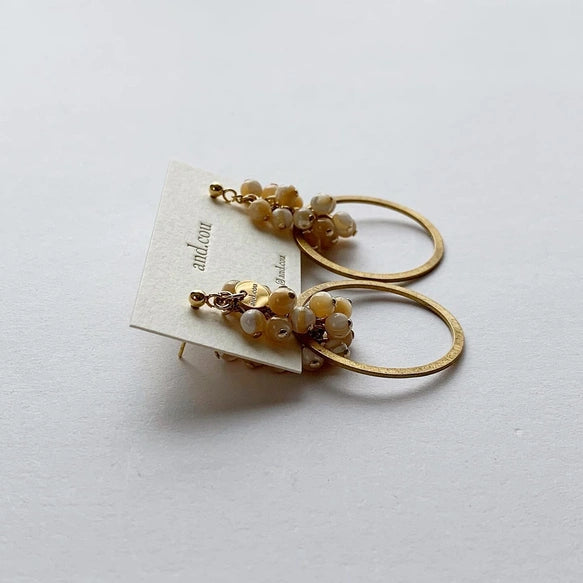 淺褐色/復古鏈珍珠母貝和黃銅環狀兩用耳飾