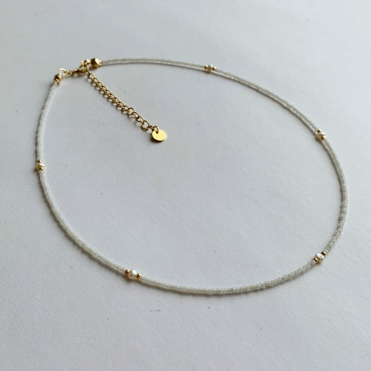 使用法國復古種子珠france vintage seed beads呈現出柔和淡雅的灰色。種子珠很小,大約1.5毫米。