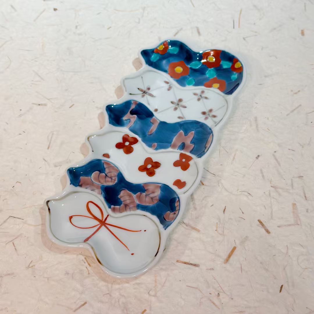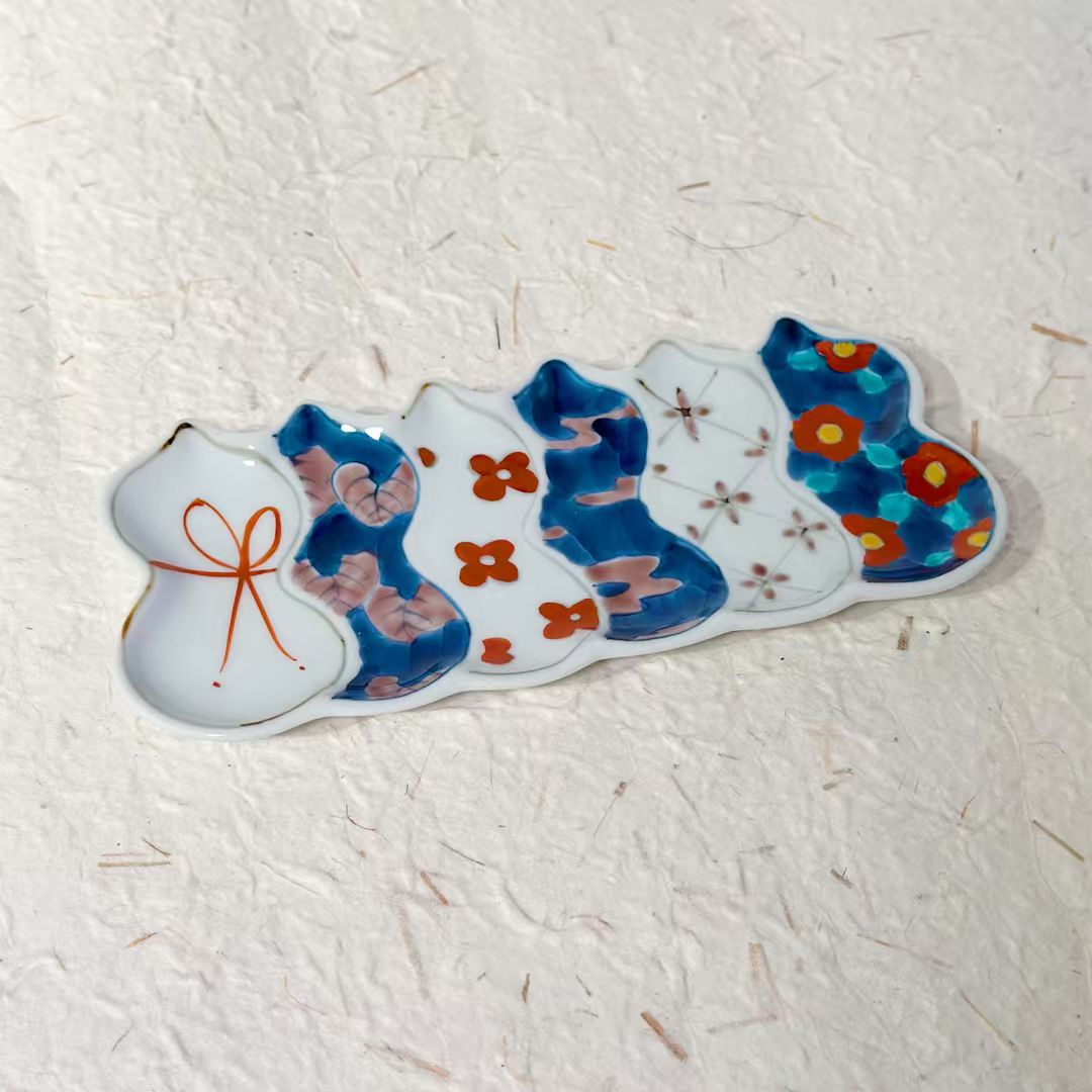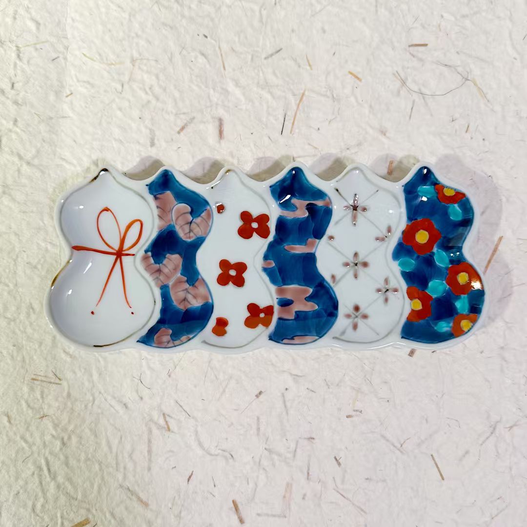 傳統有田燒。它經久不衰,自有其道理。 六個葫蘆,每個都繪有不同的圖案,均由工匠精心手工繪製。 人們相信葫蘆能帶來健康,因此被視為吉祥之物,自古以來就備受珍視。 這件作品不僅手工繪製技藝精湛,更擁有新穎溫馨的設計。雅緻的手繪圖案既美觀又可愛。