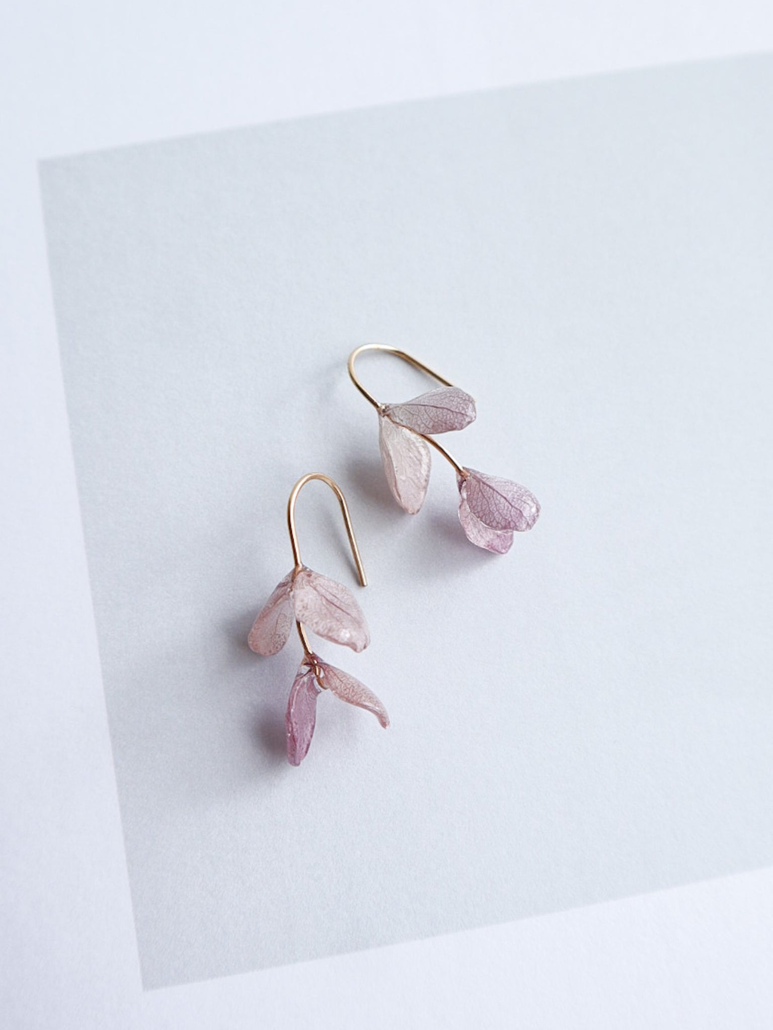 採用真繡球花瓣一片一片上覆膜工藝,宛如植物標本般定格綻放瞬間,樹脂珠寶特有的溫潤透光性,折射出如晨露般的柔和光澤。花瓣的多元形態,為你的耳朵營造出精緻華麗、充滿女性魅力的造型。 它非常輕巧,佩戴舒適,是日常佩戴的理想選擇。