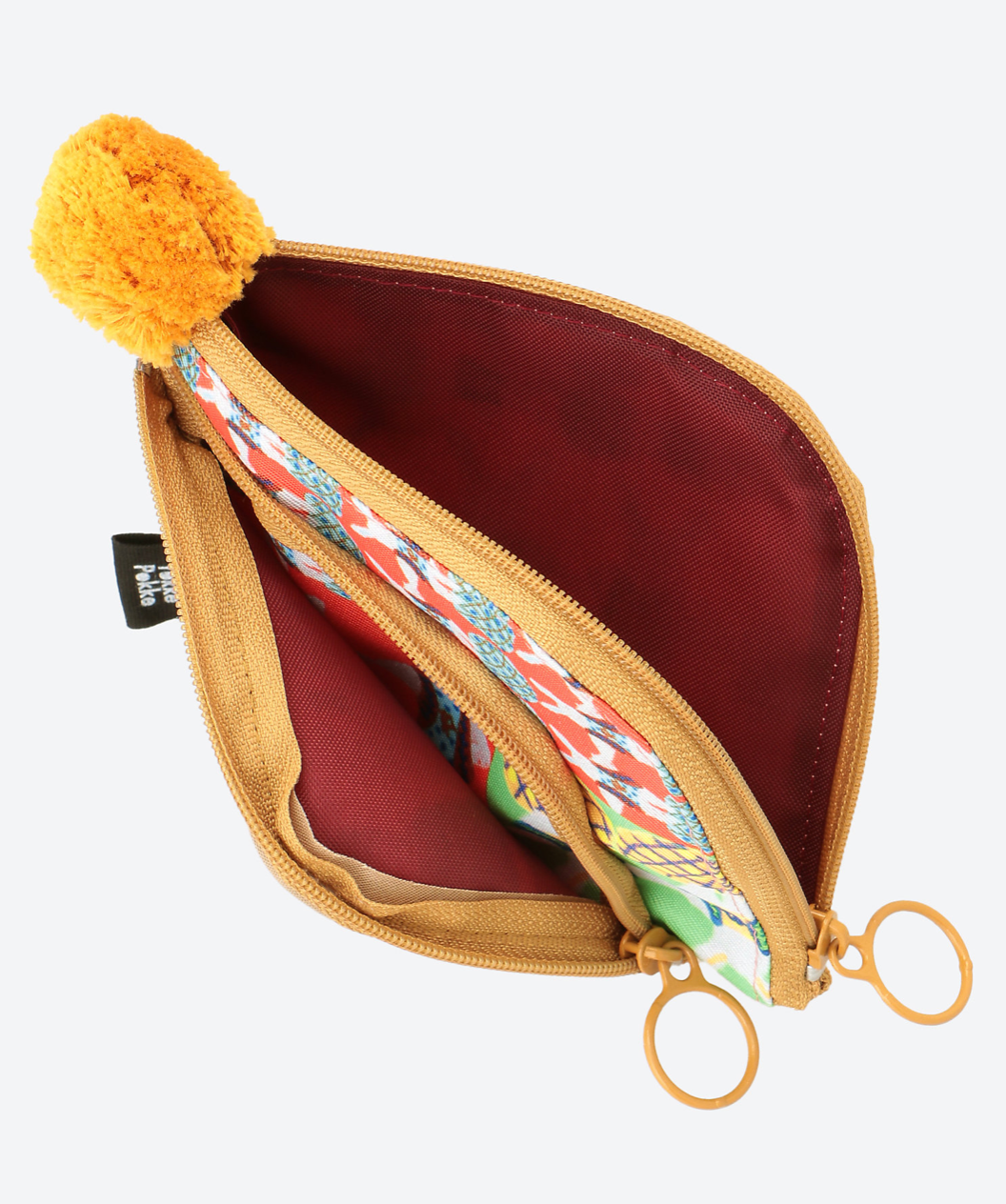 收納空間採用了圓形拉鏈設計,使用方便,極具魅力。設計師特有的圖案獨特,用色跳躍活潑。雙面圖案設計不同各有特色,而且絨球的裝飾非常可愛。